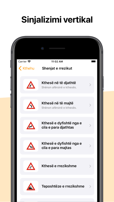 Aplikacioni përmban një koleksion të gjerë të testeve dhe pyetjeve të ndara në kategori për secilën kategori të patentës shofer. Ju do të keni mundësinë të praktikoni njohuritë tuaja duke zgjidhur pyetjet e testimeve dhe të merrni rezultate të menjëhershme. Kjo ju ndihmon të përgatiteni në mënyrë efektive për provimet e patenteve shofer. Përmes testeve dhe pyetje të ndryshme do të keni shumë të lehtë përgatitjen e Testit Final.