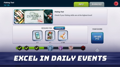 Every day you can hunt for amazing rewards like new rods, lure cards, and skill tokens in daily or weekly events. Pass the fishing trial, challenge angry sharks, become a catfish hunter or a traveler catching the biggest fish on a few different fishing spots!