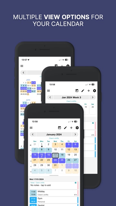 * Calendar Sync - copy shifts into your device calendar for use with other apps