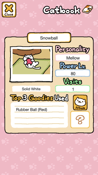 Attract cats with food and then watch them romp with your toys! More than 40 varieties of cats—white and black, tabby and calico—might stop by. Rare cats are rumored to roam the neighborhood too, but you'll need particular items to entice those elusive felines. Each visitor is logged in your Catbook. Become a master kitty collector and fill it up!