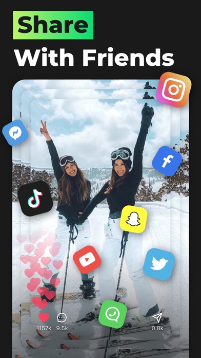 - Share your videos to TikTok, Instagram, Facebook, Snapchat to get more likes and new followers.