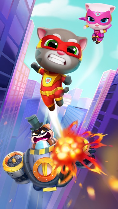 Talking Tom must run and chase down The Rakoonz and save the day. The Rakoonz have captured Angela, Ben, Hank and Ginger and it’s up to Tom to save them!